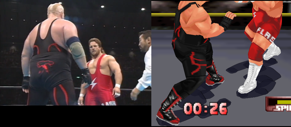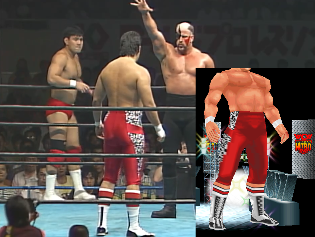 Next was an attire for Fujinami (he didn’t wear many variations) and then Scott Norton. While he’s an expendable name in this specific era/roster, I thought it would be fun to have him manhandle Vader like those early NJPW days. Here’s a comparison.
